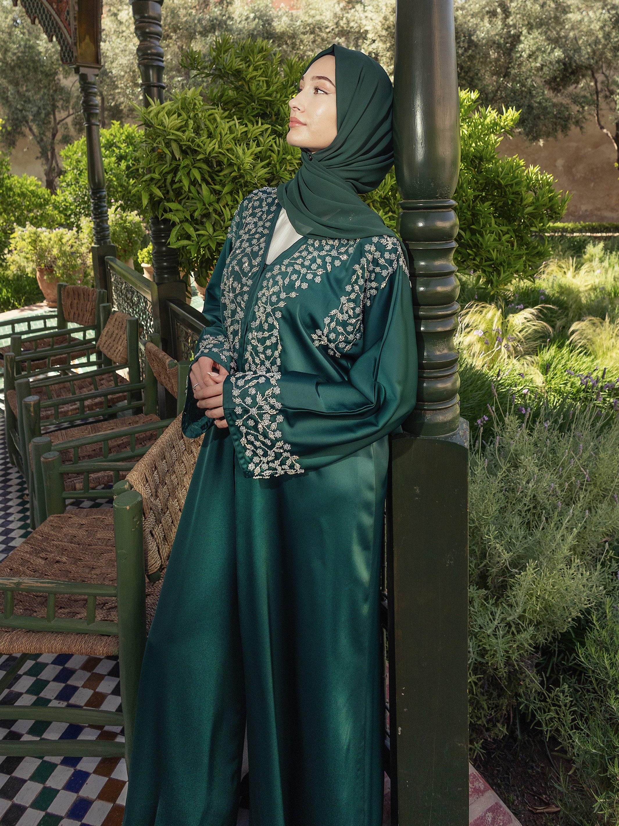 Mystic Emerald Satin Abaya