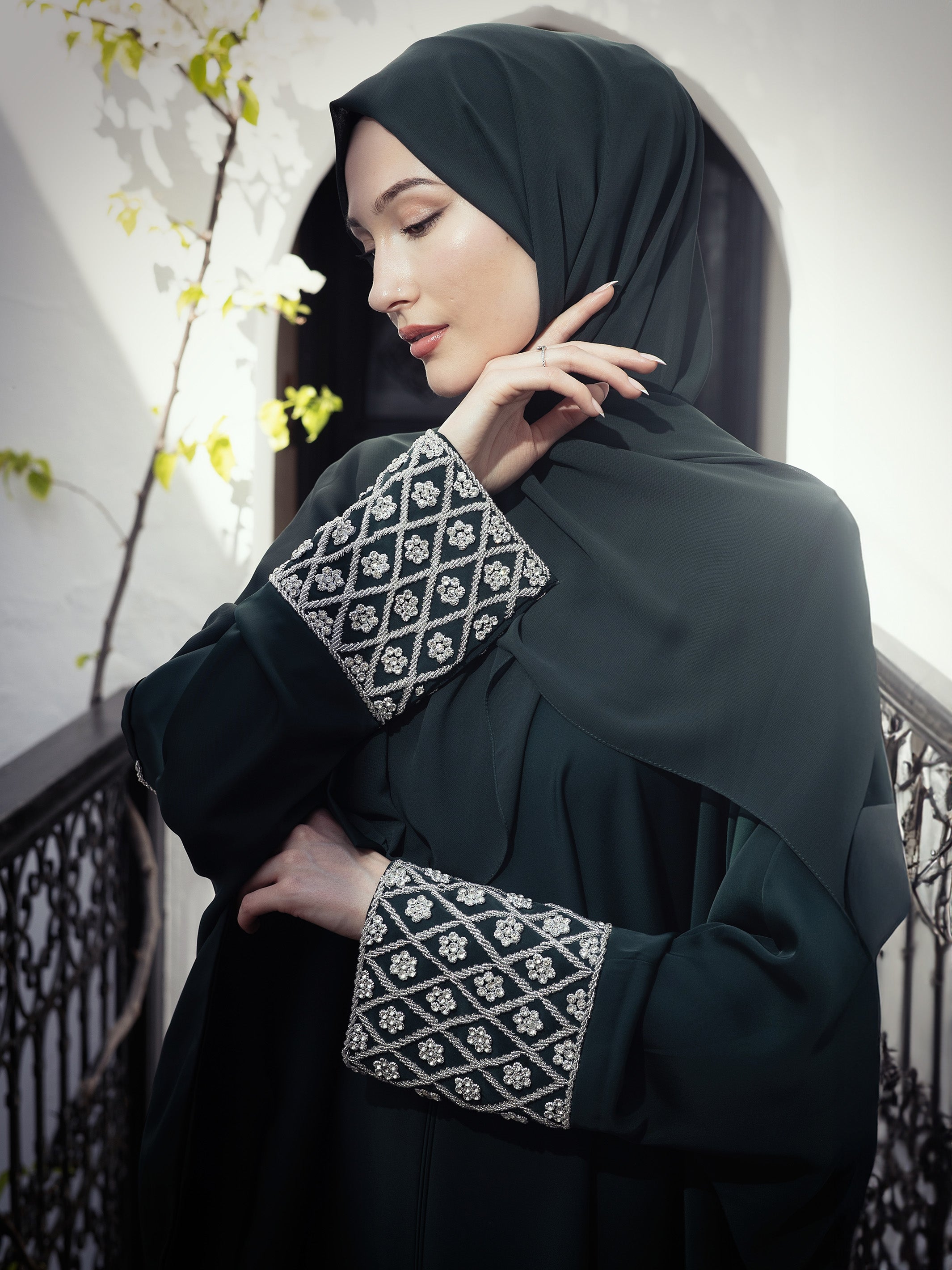 Luxury Unveiled: Indulge in the supreme sophistication of our Mystic Emerald Satin Abaya